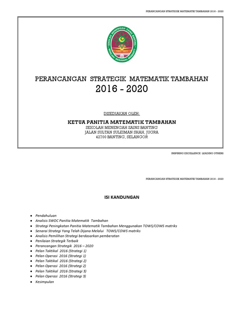 Perancangan Strategik Addmath 2016 2020 Pdf